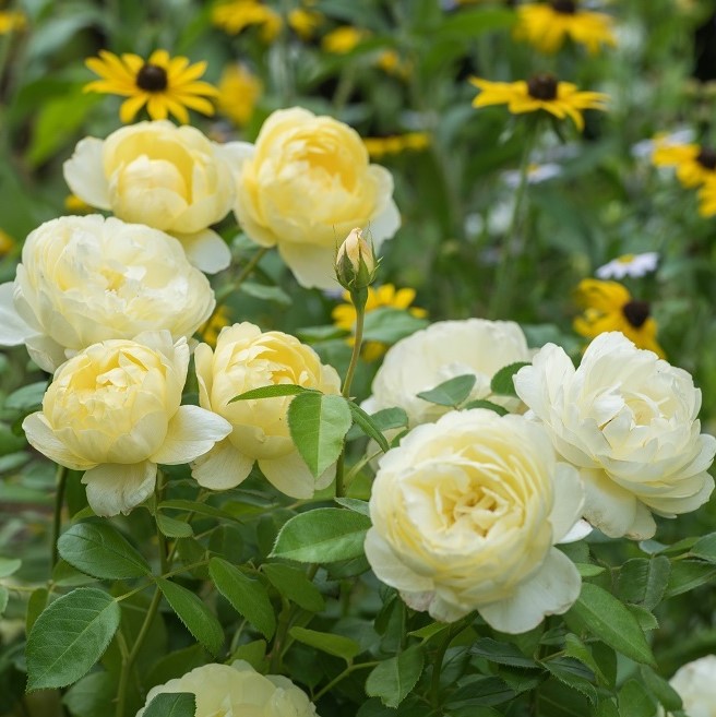 Округлые бутоны окрашены в нежные, пастельные тона лимонно-желтых и кремово-белых оттенков, иногда с заметной розовой палитрой. Издалека стебель кажется покрытым шариками сливочного пломбира. Шаровидные или чашевидные, среднего (6–7 см) размера в диаметре, цветки обладают бледно-желтой окраской с добавлением кремовых и молочных тонов без пестроты. Густомахровые бутоны состоят из 40–60 шелковистых матовых лепестков с закругленными краями, в центре расположен венчик золотисто-желтых тычинок.